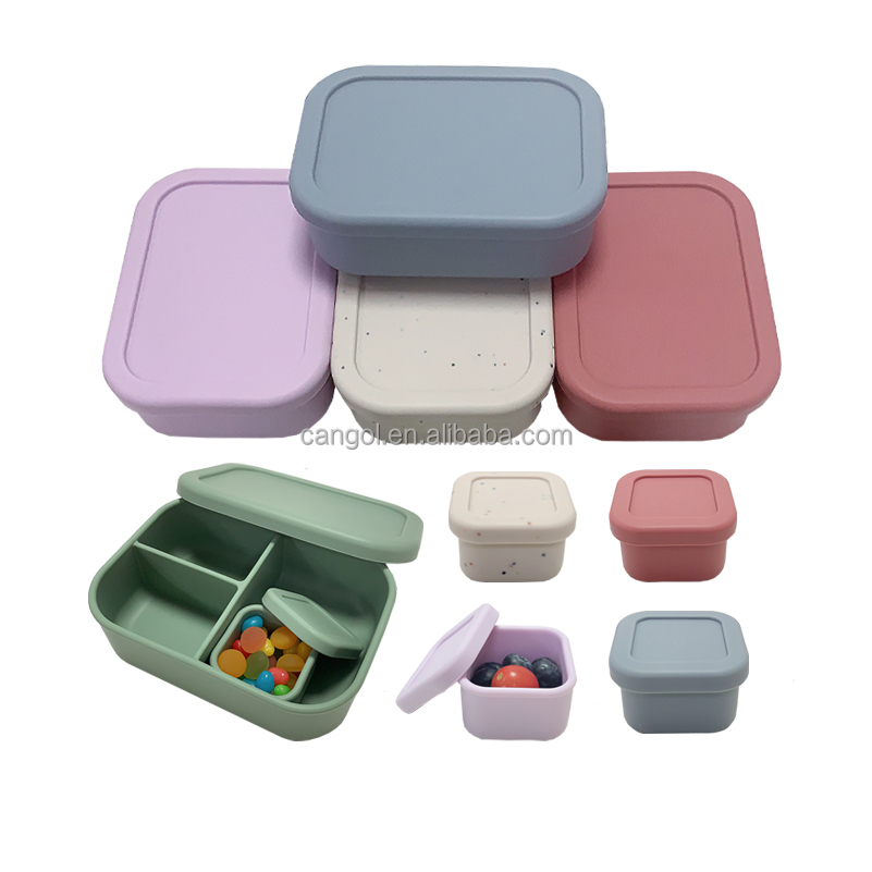 حاويات سيليكون مخصصة للأطفال حاوية تخزين وجبات خفيفة قابلة لإعادة الاستخدام حاويات وجبات مقسمة للعمل المدرسي