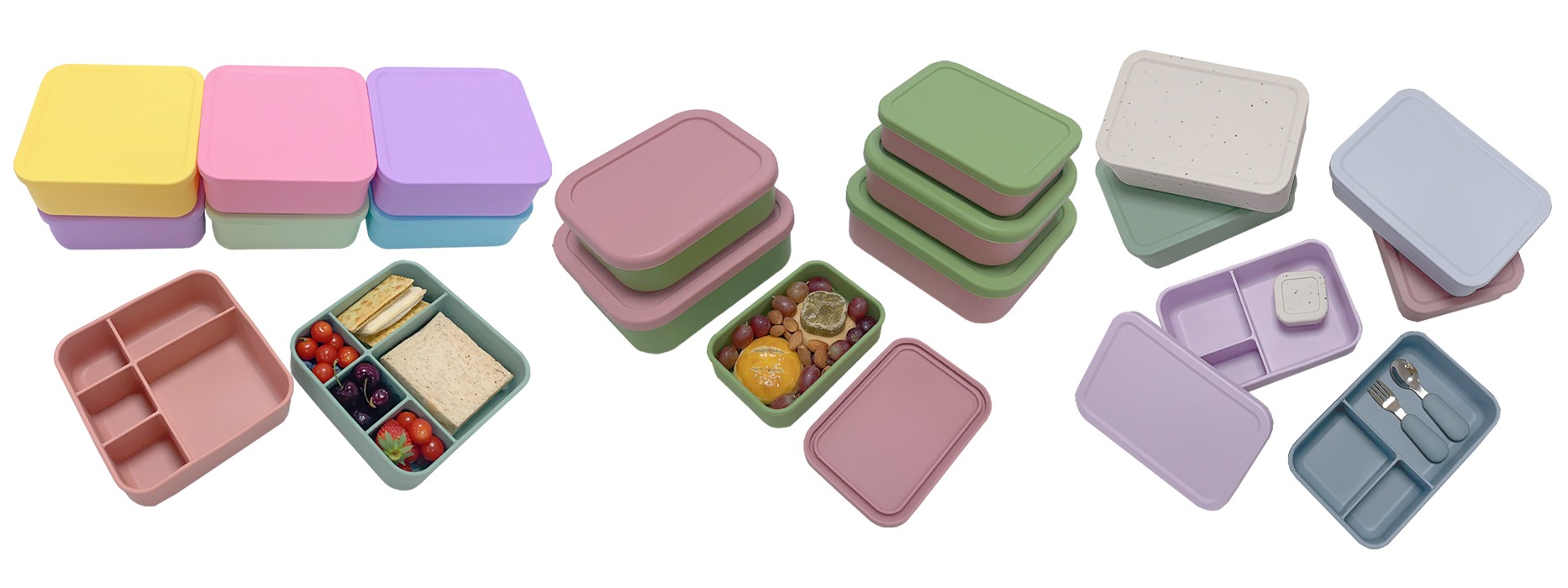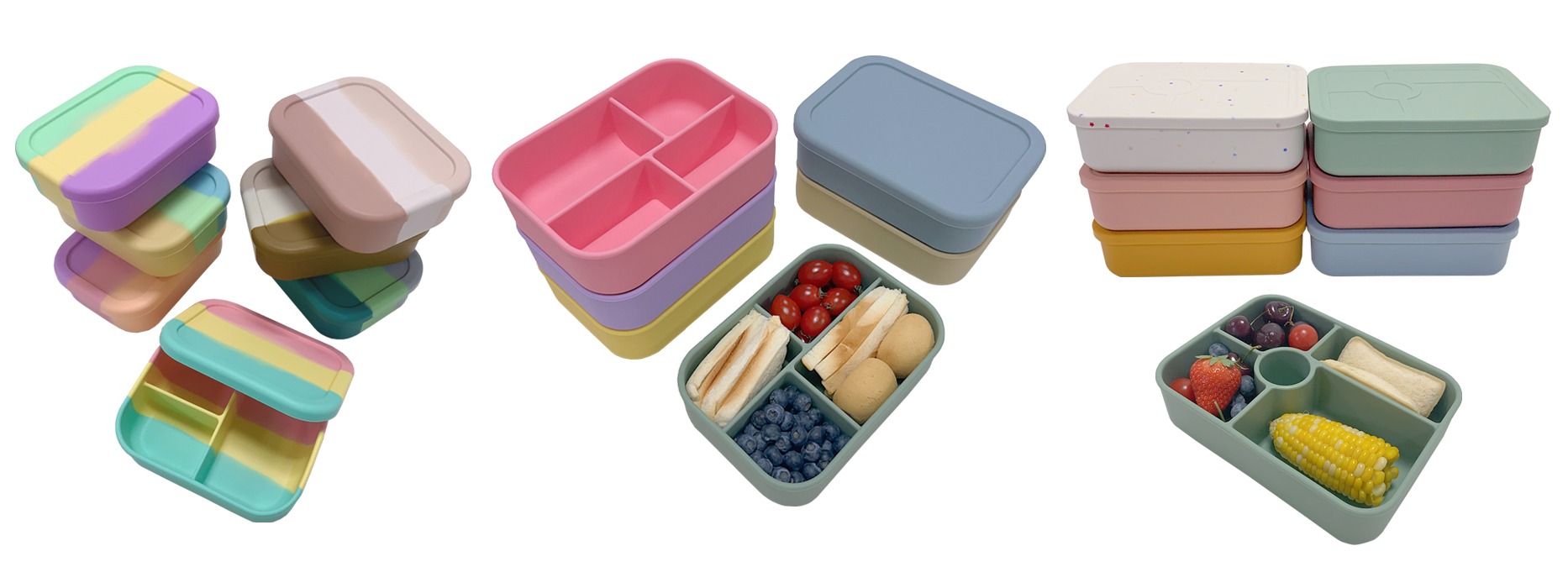 Silicone Bento Lunch box MOQ:100pcs Our Silicone Lunch box are Made from food-grade silicone, so you can safely store prepped ingredients, warm meals, baby food, fresh fruit and vegetables